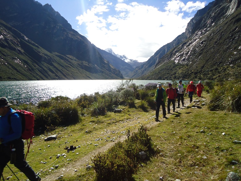Este día nuestros arriero cargaran nuestros equipajes técnico como personal en los burros y salimos desde Cb Alpamayo con dirección de retorno a la Quebrada Santa Cruz, pasaremos por los dos laguna de Jatuncocha – Ichiqcocha, para estar llegando a Campamento Llamacorral.