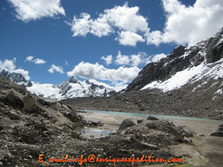 5to día.- Campo base (4400m) – Q. Yanarajupampa (4800m) - Col Ranrapalca (5300m).