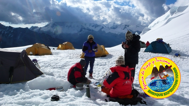 En este lugar nuestros portadores estarán cargándole equipaje técnico de escalada como campamento y estaremos comenzando la caminata hasta el Campo base Chopicalqui (4.350 m .s.n.m).