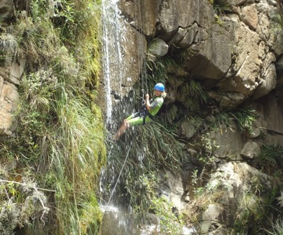 Se realiza en el Cordillera Negra. Esta aproximadamente a media hora de viaje de Huaraz. Una vez que se arriba al lugar se camina por un valle empinado hasta la cascada de 15 mt. hasta de 35 mt desde donde se inicia el descenso por el cañón en ella encontramos cascadas de diferentes alturas, este tour lo realizamos con personas con o sin experiencia, luego de una adecuada y practica instrucción en la parte superior damos inicio a nuestro deporte, para contrarrestar el frió proveemos de trajes de neopren y casacas impermeables. Lo invitamos a un día de una experiencia inolvidable experiencia en un admirable paisaje