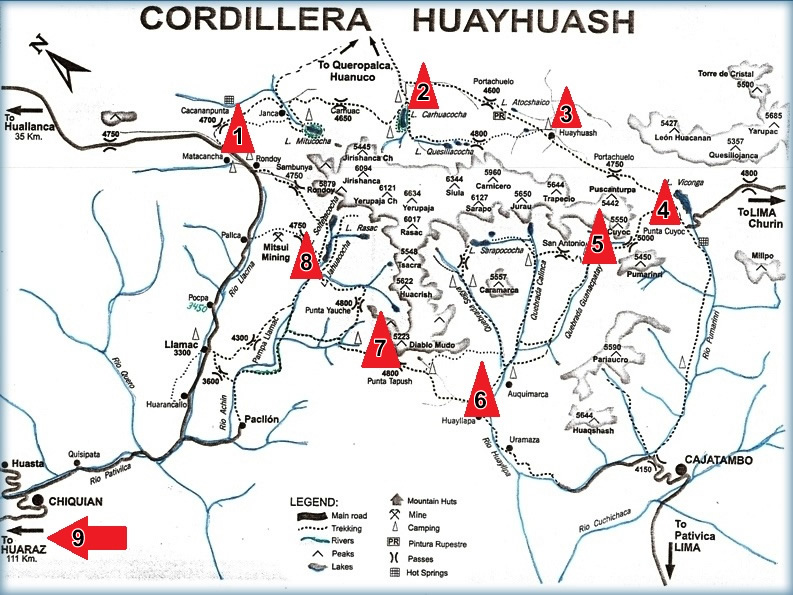 MAPA DE LA RUTA DE TREKKING & ESCALADA CORDILLERA HUAYHUASH.