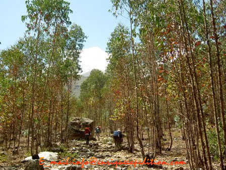 Saldremos de Huaraz con destinos a Mancos (2530m.) para luego subir por 20 kilómetros de pista afirmada al centro poblado de Musho que se encuentra ubicado asía la parte NE de Huaraz, en Musho nos espera los burros y arriero que se encargaran de nuestro equipo personal (escalada) como de campamento, y saldremos al Cb Huascarán (4800m).