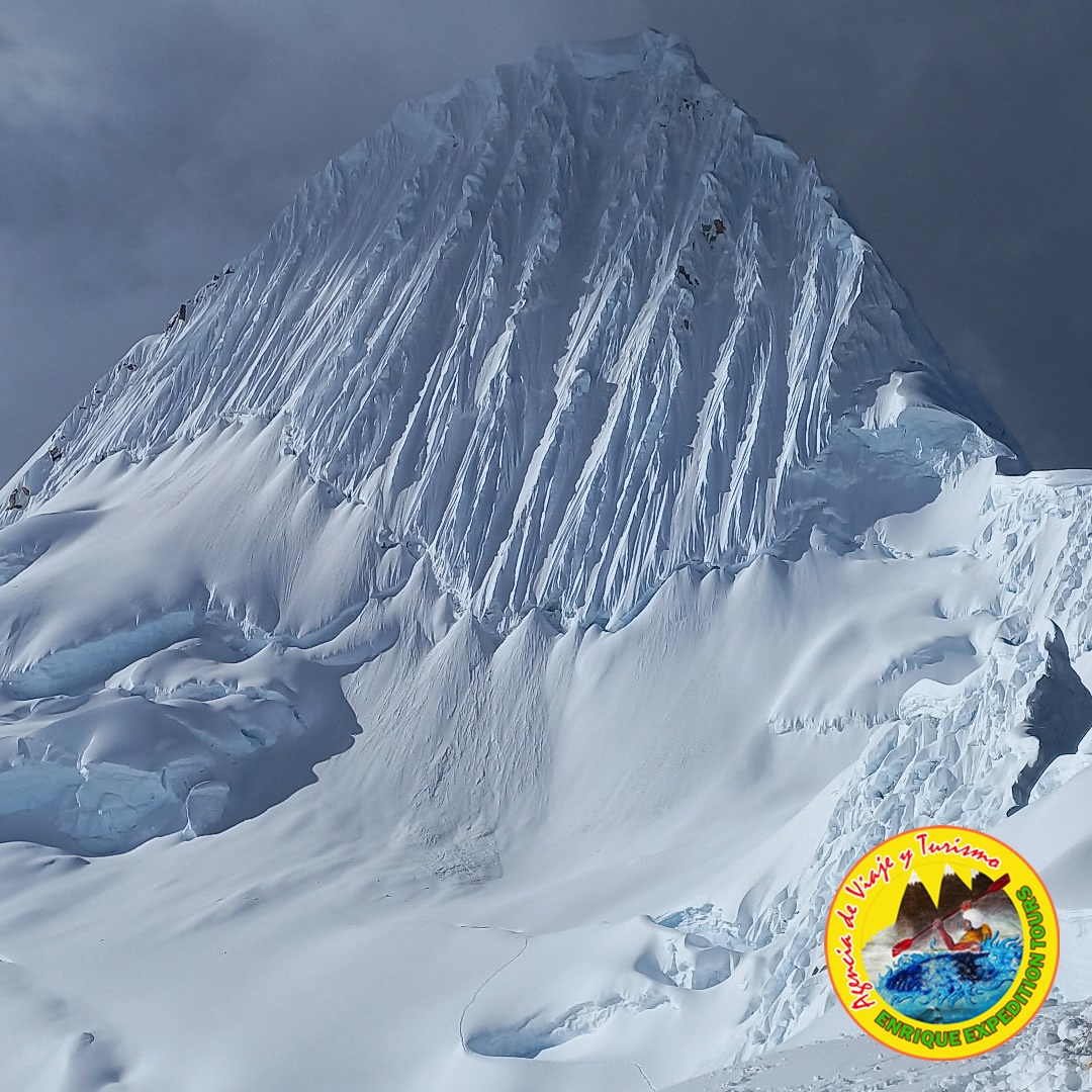 El Alpamayo, junto con nuestro imponente Huascarán, son las más famosas montañas de la Cordillera Blanca y también son los principales objetivos de los montañeros que llegan por primera vez lo que tienen en su punto de mira como una montaña necesaria para su historia deportiva para el ascenso a la montaña más bella del mundo.