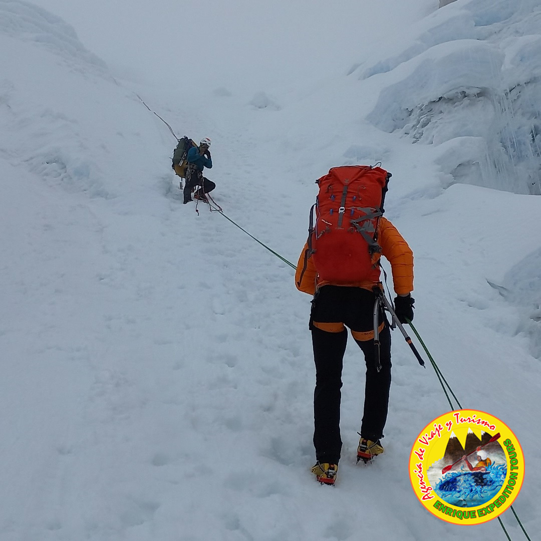 Organización del Material de montaña e información logísticas de nuestro Guía (IFMGA - UIAGM) Sobre la ESCALADA NEVADO ALPAMAYO.