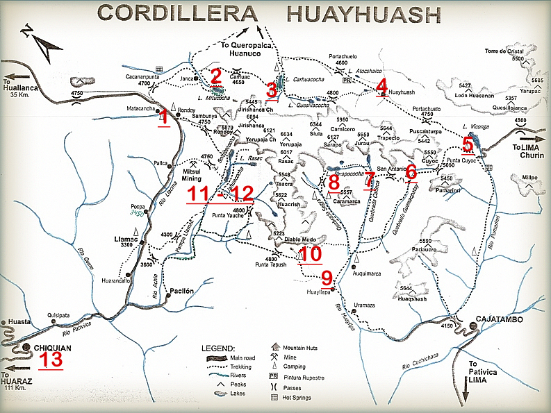 13vo día.- Pueblo de Huallyapa (3500) Paso Tapush (4800) Campamento Anguscancha (4200).