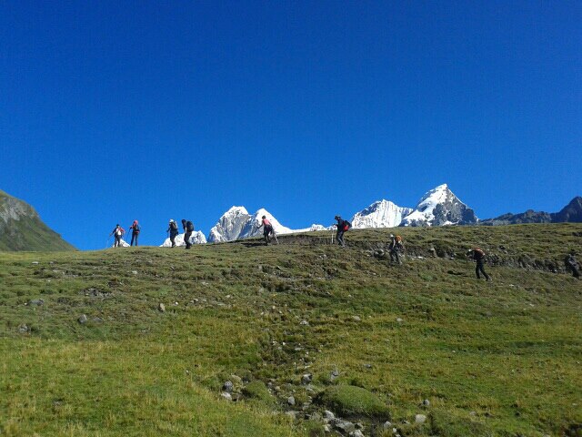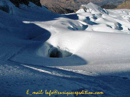 Opción: también se puede subir este día hasta el Campo Morreno de Vallunaraju y de esta manera sería más fácil la ascensión el segundo día.