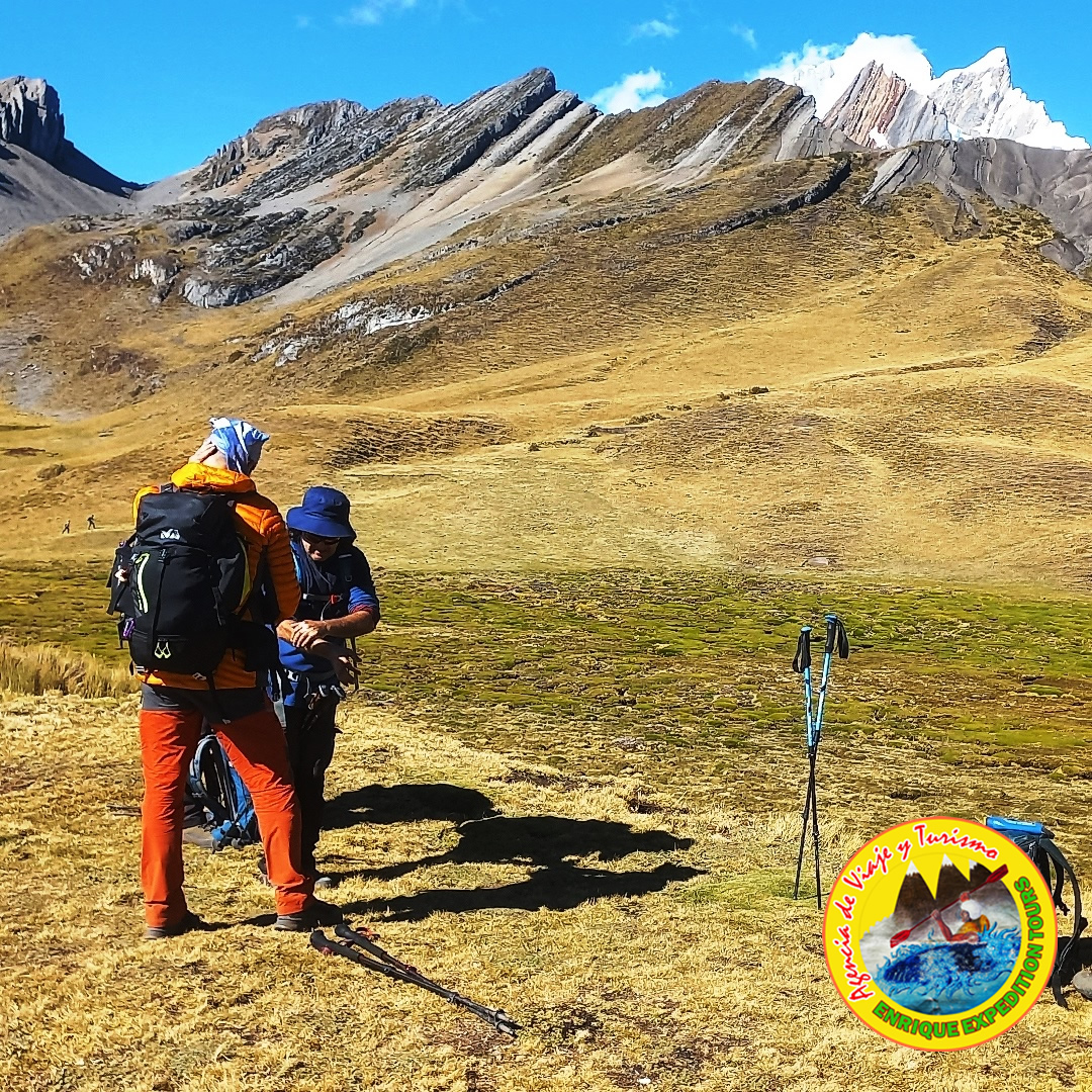 We will leave the camp to climb up to the lookout San Antonio, where we have a beautiful view of the Cordillera Huayhuash. Later we will descend along the valley Guanacpatay to the village of Huayllapa. After visiting the village we will head towards our camp Huatiaj.