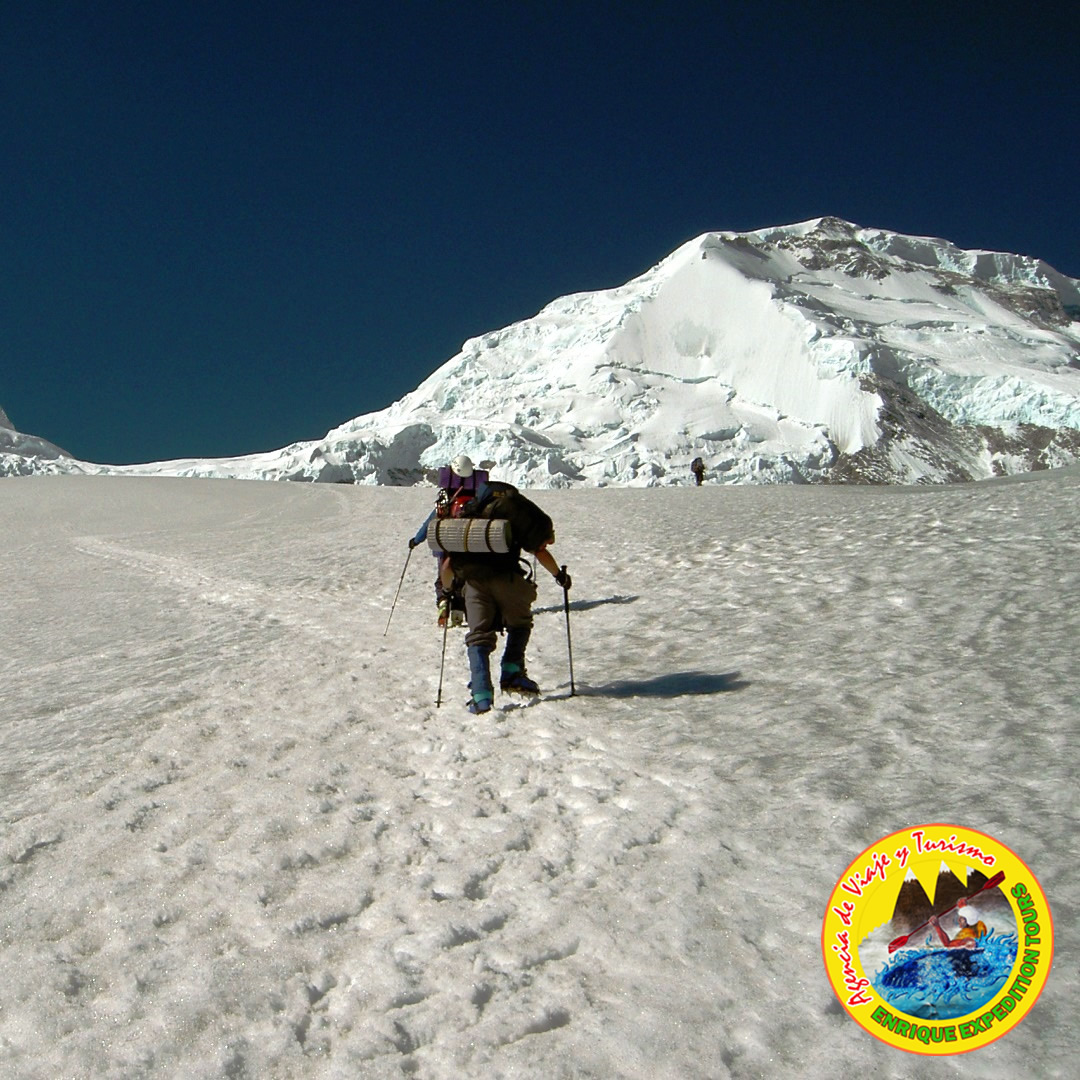 Salimos muy temprano del Cb, subimos una morrena encima de la laguna Lejiacocha y nos dirigimos hacia el C1 (5200) para llegar al C1 hay que pasar una zona pedregosa de unos 400 metros encima de la cual está el C1, en esta parte el equipaje lo llevaremos con porteadores ya que el acceso de mulas es imposible y si hay nieve en esta parte utilizar grampones y piolet en esta zona nos dirigiremos más a la parte izquierda posible y también es conveniente pasar muy temprano ya que caen muchas piedras, por lo tanto le proporcionaremos cascos, la pendiente de hasta 50 -55º. Si es un año seco la nieve empieza a mitad del corredor donde se entra al glacial. Desde este punto al C1 ir Subiendo una interminable cuesta de 40 – 45º porteando nuestras equipaje y también sorteando alguna grietas estaremos llegando al C1 a 5200m estaremos apreciando una vista espectacular del gran plato glacial que tiene este nevado.