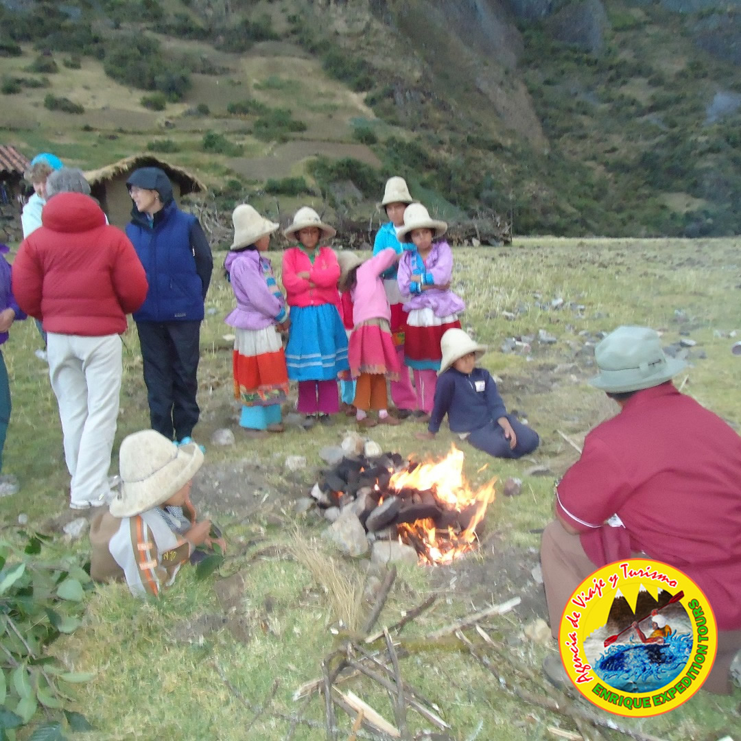 Después de cruzar el alto de Alpamayo (4,750 m.s.n.m), descenderemos hasta el pueblo de Alpamayo, lugar donde encontraremos corrales y viviendas Pre - Incas.