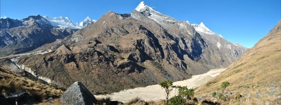 Este da se vencerá el paso Punta Unión (4750) desde aquí se vera los Nevados de Taulliraju,