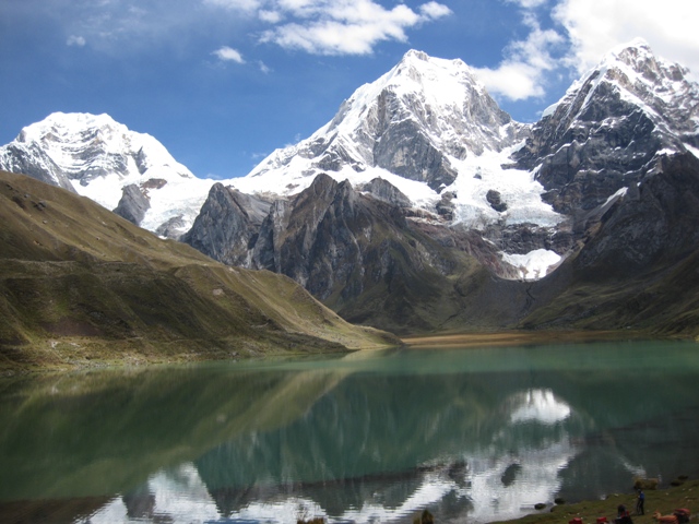 Caminata de 6 – 7 Horas. Se pasa el tercer paso de Carnicero (4600). Descenso por en medio de las Lagunas de Atocshaico, Carnicero. Observamos los nevados Siula, Jural, Carnicero y Trapecio.