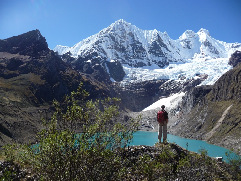 Caminata de 6 – 7 Horas. Se pasa el tercer paso de siula (4800). Descenso por la Laguna de suerococha. Observamos los nevados Siula, Jurau, Carnicero y Trapecio.