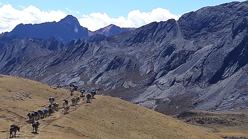Caminata de aprox. 6 – 7 horas este día venceremos el paso Sambunya (4.750m) para descender hacia la laguna de Jahuacocha y el trayecto observaremos laguna de Solterococha hasta llegara a la laguna de Jahuacocha donde campamento (4100m.).