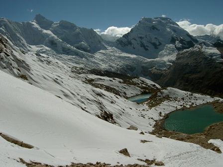 4to día.- Cayeshpampa (4100m) - Lagunas Tullpacocha (4300) y Cuchillacocha (4625) - Campamento Cayeshpampa.