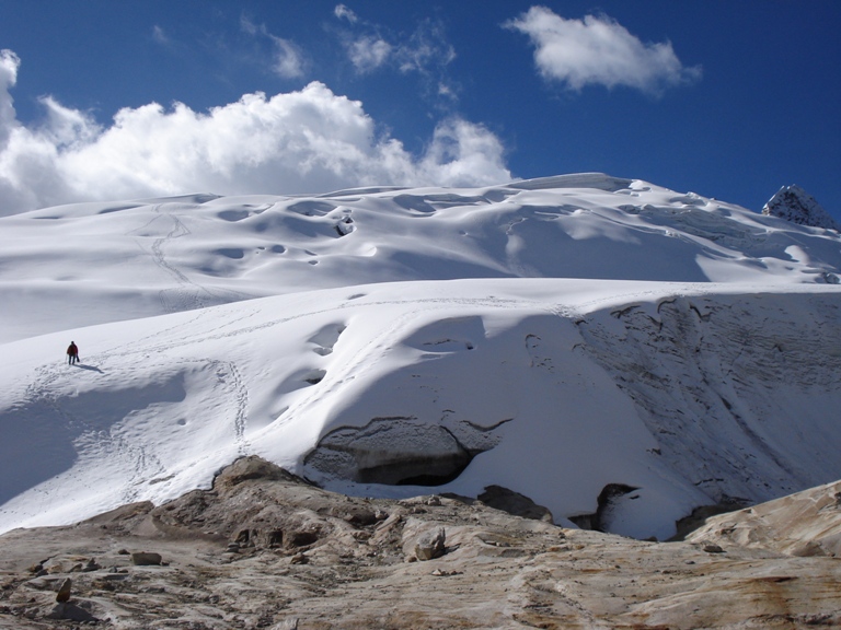 5to día.- Campo Morrena (5000m) – Cumbre Vallunaraju (5686m) – Q. Llanca – Huaraz.